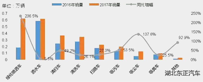 20171~7月市政環(huán)衛(wèi)車各細(xì)分市場表現(xiàn)