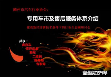 隨州市汽車行業(yè)協(xié)會(以下簡稱協(xié)會)在隨州市專汽博覽中心了召開了隨州市汽車行業(yè)協(xié)會會長會議暨專用車+互聯(lián)網(wǎng)垂直生態(tài)圈研討會。會議由協(xié)會會長肖志強主持,參會領(lǐng)導(dǎo)有市工商聯(lián)副主席蔣代斌,參會會長單位有重汽華威總經(jīng)理陳勇、湖北三環(huán)鑄造原黨委書記章有亭、中航工業(yè)奧龍副董事長陳廣濱、湖北潤力董事長尚傳書、湖北大力董事長劉錦元、湖北五環(huán)董事長王小華、成龍威總經(jīng)理劉鼎、廈工楚勝副總經(jīng)理王小康、東風(fēng)隨專副總經(jīng)理銀全林等23人出席。