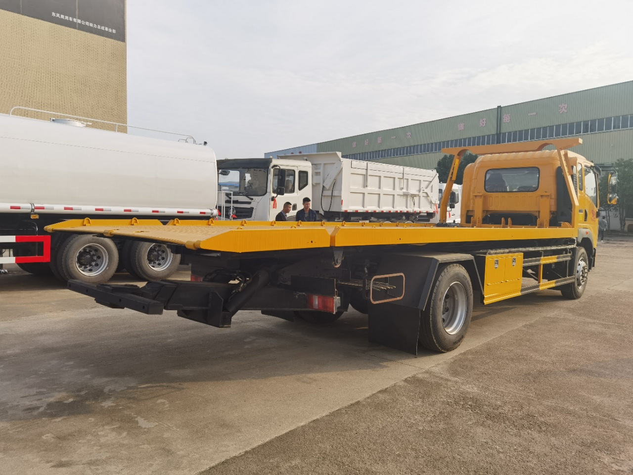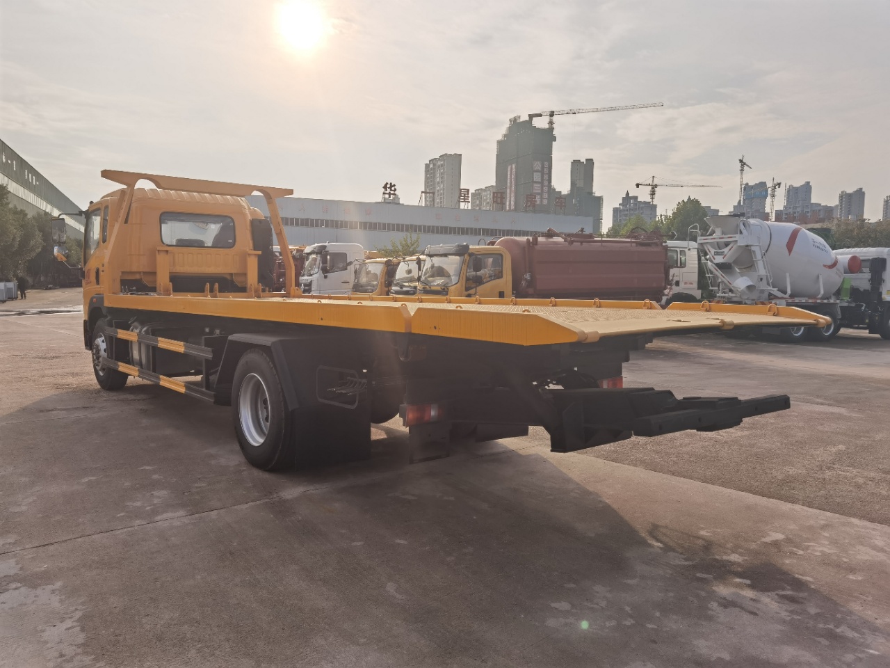 一拖二上裝配置:雙側(cè)聯(lián)動操作裝置,8噸平板,8噸3節(jié)后拖臂,8噸絞盤(35米鋼絲繩)帶液壓翻板1.2米?偘彘L7.9米。4根綁帶,L型抱胎架一對,抱胎筒一對,小車1對,1套拖叉座,3套拖叉。