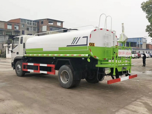 (2)配備專用灑水泵,前噴后灑、側(cè)噴、后工作平臺(tái)及灑水高壓炮。灑水泵自吸高度為7米左右,整車灑水寬度15米左右,后工作平臺(tái)水炮可調(diào)節(jié)(直沖狀、大雨、中雨、小雨、毛毛雨),有效射程28-35米。整車帶消防接頭、自流閥及自吸功能。附送2根3米水管,1個(gè)爬梯,兩側(cè)及后保險(xiǎn)杠。